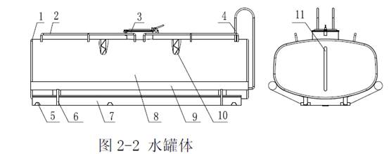 10、由于罐體與汽車大梁之間墊有木膠墊,水罐載重后各U型螺栓由于木膠的變形會發(fā)生松動,因此在車重載后,必須定期擰緊U形螺栓,尤其是新車使用時必須做到這點。