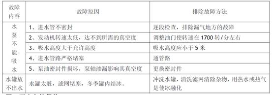 5、整車水路系統(tǒng)無防凍裝置,因此嚴寒地區(qū),氣溫攝氏度以下使用后,應(yīng)立即將水泵、水罐及水路系統(tǒng)中的積水全部放凈,注意水泵放水螺塞放水后應(yīng)關(guān)閉嚴密,確保密封,否則將影響水泵吸水。